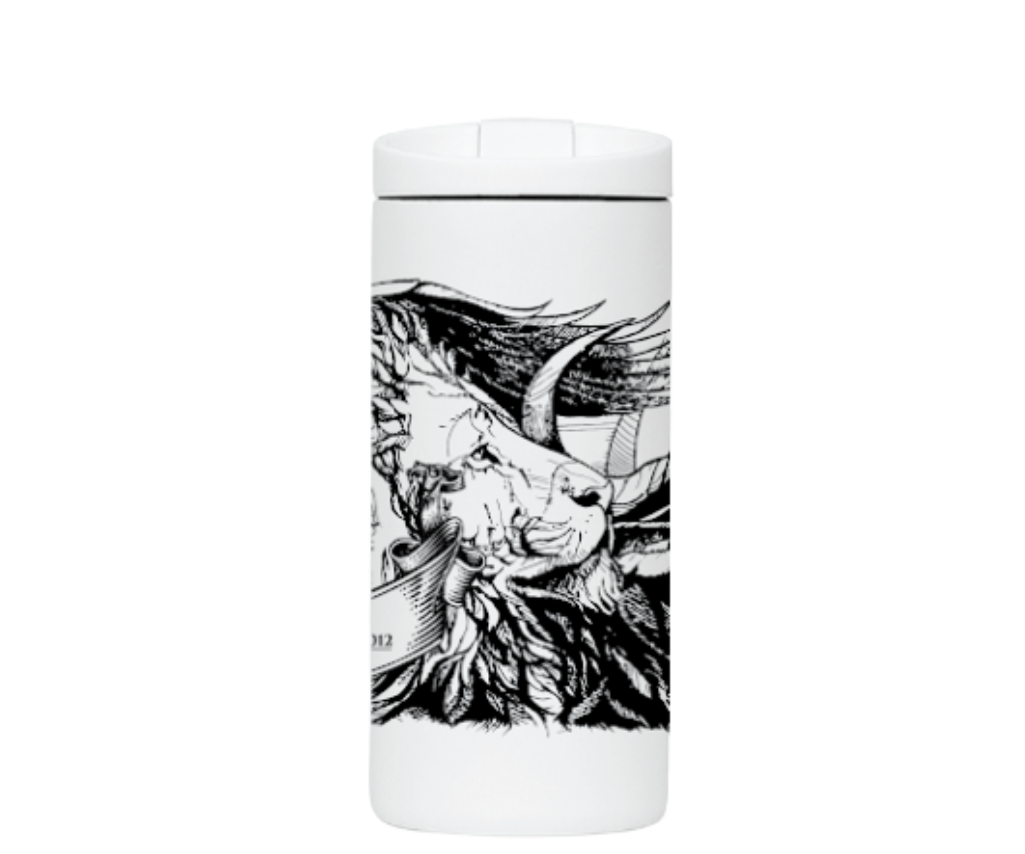 12oz Tumbler for hot drinks. White tumbler with our Kuppa Joy Throne and Revelations cup design engraved.